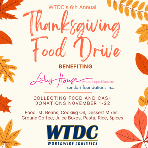 WTDC is excited to announce our 6th Annual Thanksgiving Food Drive, continuing our ongoing partnership with Lotus House, a nonprofit organization dedicated to providing shelter and support for homeless women and children in Miami. This holiday season, we invite you to join us in making a difference and helping those in need.